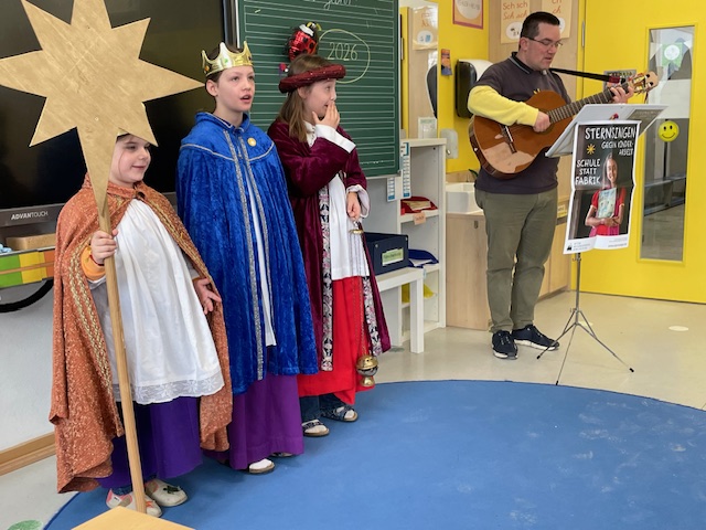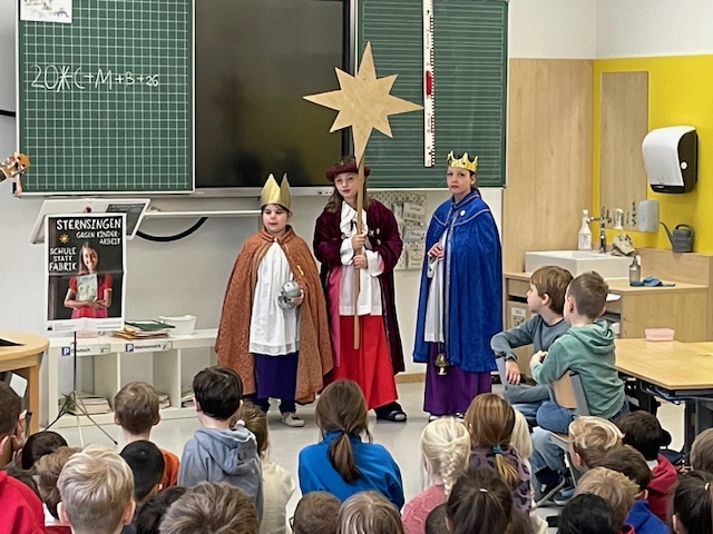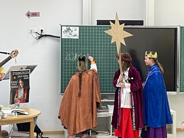 Pünktlich zum Schulstart nach den Ferien, am 7. Januar 2026, besuchten die Sternsinger gemeinsam mit Herrn Josef Reithmeier alle Klassenstufen. Die drei Heiligen Könige sangen für uns, erklärten die Tradition und Bedeutung dieses schönen Brauchs und schrieben den Segen Gottes an die Klassenzimmertüren.