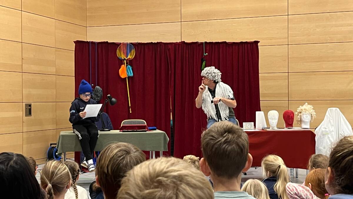 Am 27. Oktober fand in unserer Turnhalle eine besondere Leseveranstaltung statt. Michael Hain präsentierte dort das Buch Geisterjäger von Cornelia Funke in einem lebendigen Lesetheater-Format. Die Vorstellung zog die jungen Zuhörerinnen und Zuhörer sofort in ihren Bann und machte die Handlung greifbar: Spannung, Fantasie und eine Prise Humor begleiteten die Lesung.
